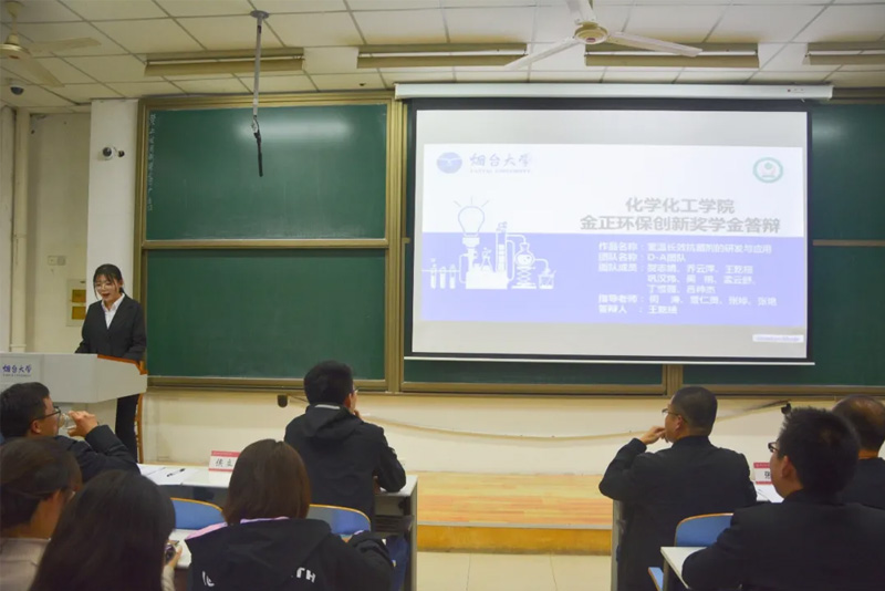 10月29日晚,煙臺大學化學化工學院年度金正環(huán)保創(chuàng)新獎學金答辯活動在學校綜合樓205室開展,經(jīng)過學院初選,包含革新“涂”強團隊等在內(nèi)的18支個人和團隊進入最終答辯環(huán)節(jié),大賽設一等獎3名,二等獎4名,三等獎3名,共10位個人/團隊獲獎。